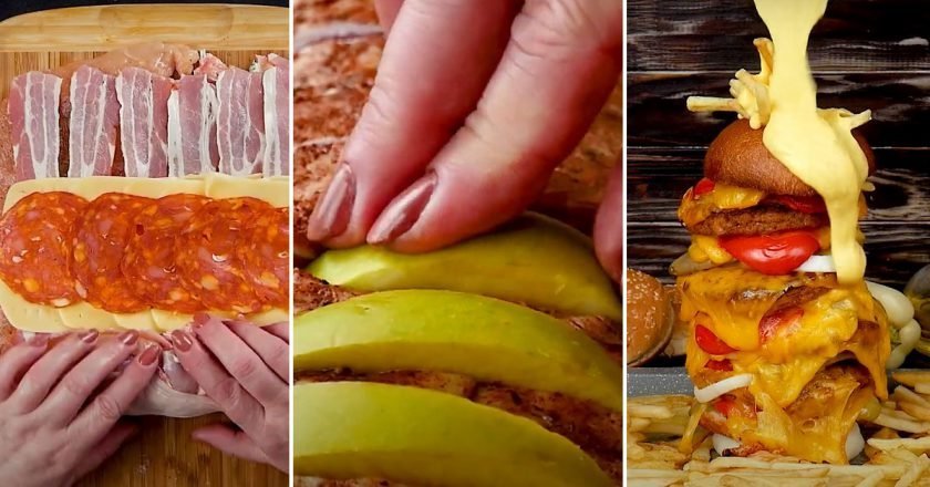 Теперь знаете, какой обед приготовить? За вкус и аромат каждого блюда ручаюсь лично! Любителям морепродуктов подойдет пирог с рыбой, мясоедам — куриный рулет и свиная корейка, а поклонникам фастфуда — огромный бургер. Какой рецепт вам понравился больше всего?