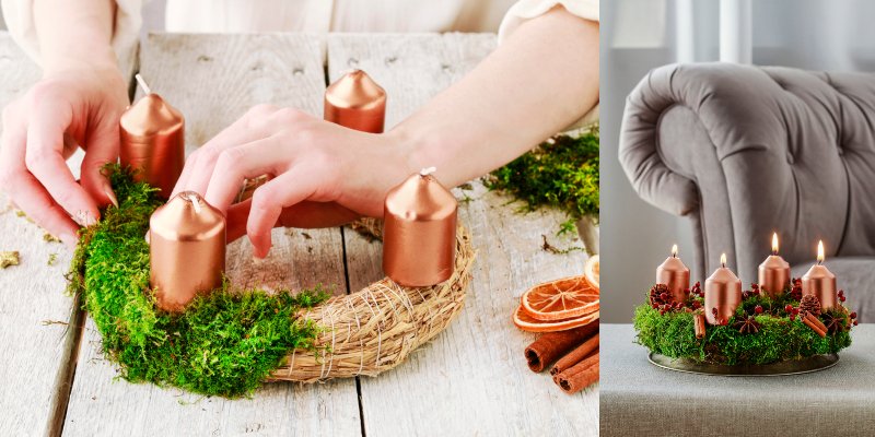 Когда за окном противно, слякоть и нет снега, новогодние украшения своими руками спасают квартиру от уныния, а хозяев — от творческого голодания. Искрящийся свет и мерцающие свечи создают магию новогодних праздников, освещая холодные серые дни и длинные темные ночи. Создать теплую и гостеприимную, элегантную и роскошную или минималистичную и утонченную атмосферу можно при помощи свечей разных размеров, цветов и фактур.