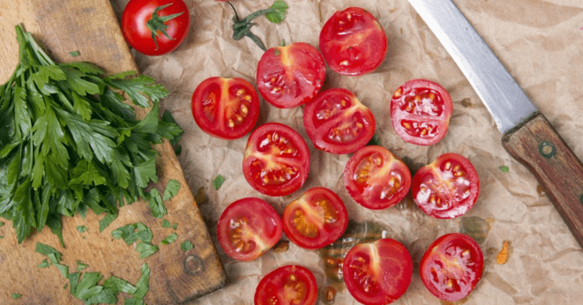 Помидоры черри используют во многих салатах — они добавляют особого вкуса и эстетичности. Однако резать эту мелюзгу каждую по отдельности долго.
