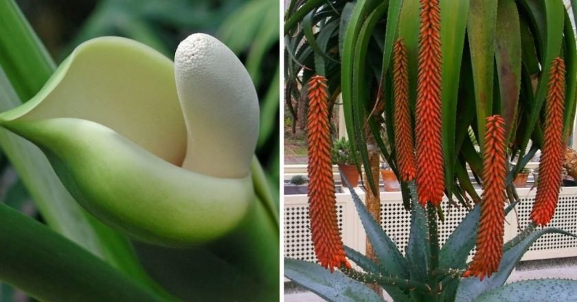 Алоэ держат дома скорее ради его лечебных свойств. Привлекательностью суккулент особо не отличается. Зато в природных условиях вы бы наверняка сделали несколько фото, чтобы запечатлеть, как цветет алоэ. Длинные цветоносы алоэ состоят из множества мелких вытянутых цветочков ярко-красного цвета.