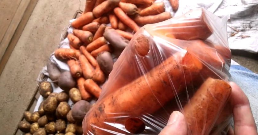 - Сложите овощи в полиэтиленовые пакеты: свеклу отдельно от моркови.