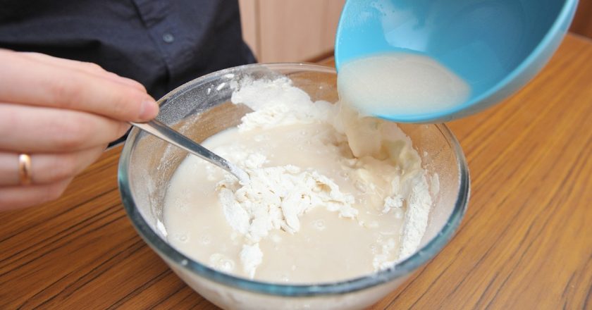 Существует миф, согласно которому дрожжи нужно разводить вместе с сахаром, чтобы им было чем питаться. Однако это не совсем так. Для начала они должны проснуться, иначе они не будут выделять достаточно кислорода. Добавляйте сахар перед мукой.