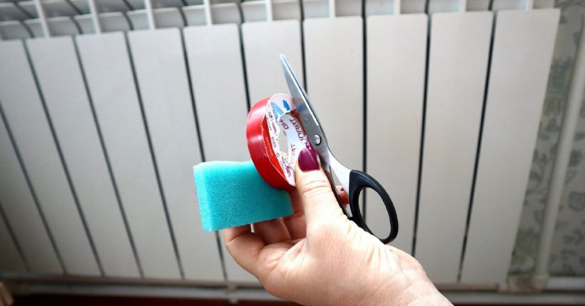 Если у вас один из тех радиаторов, где между ребрами нет и сантиметра свободного пространства, то есть еще более простой способ. Для этого нужно взять ножницы, обернуть лезвия, например, скотчем, чтобы затупить, и отрезать небольшой кусочек губки. Далее ножницами берем этот кусочек, просовываем сверху внутрь радиатора, и, пользуясь ножницами как своеобразной ручкой, просто проводим сверху вниз. Влажная губка соберет изнутри достаточное количество грязи. Ножницы, кстати, можно заменить линейкой, продев ее сквозь губку.