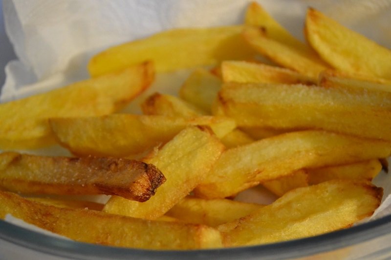- Это правило следует прямиком из первого: картофель важно тщательно высушить! Поэтому отбросьте его на дуршлаг, а затем выложите на бумажное (или льняное, как больше нравится) полотенце, чтобы от влаги не осталось и следа, поскольку это тоже мешает образованию корочки. А горячее масло тоже не любит контакт с водой.