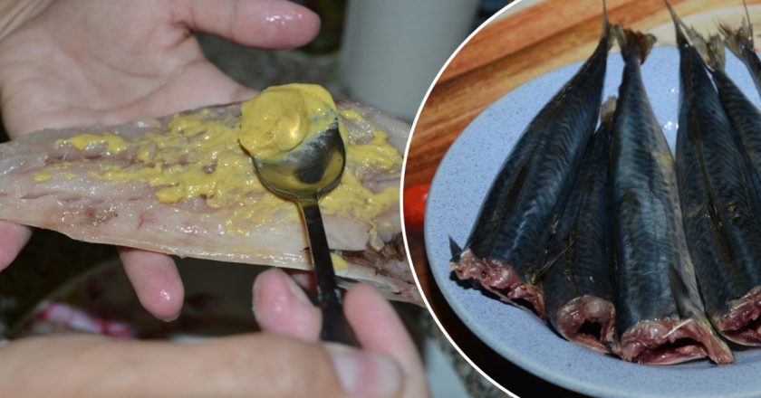 - Полученной смесью натираем скумбрию с внутренней стороны.