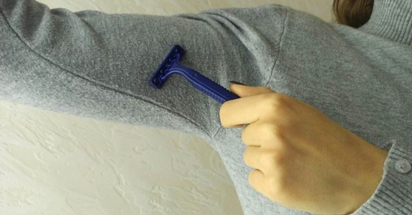 Это, пожалуй, самый известный народный метод — чистка обычной бритвой. Ее преимущество в доступности и простоте. Однако далеко не все обладают необходимой сноровкой. Сохранение любимой вещи в целостности и сохранности напрямую зависит от аккуратности. Если торопиться, то лезвием можно легко порезать ткань.