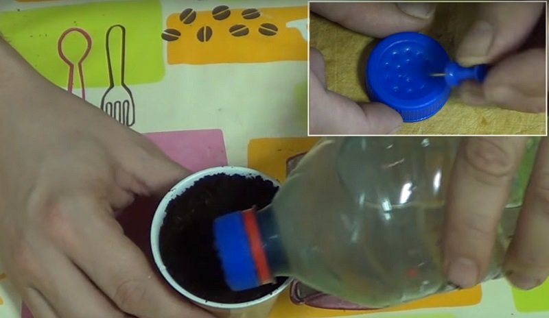 - Насыпьте грунт в пластиковые стаканчики почти доверху.