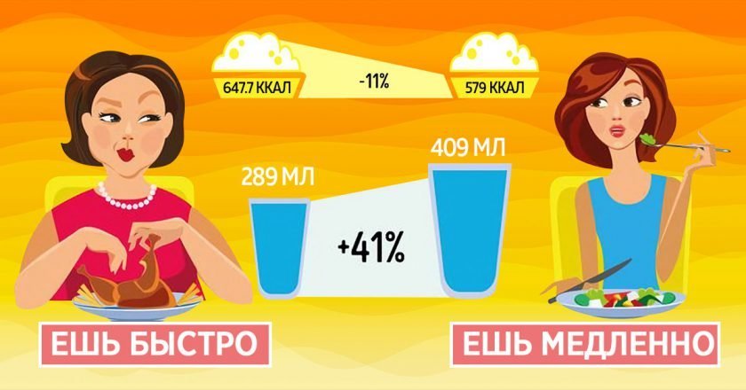 Тут двух мнений быть не может: размеренный прием пищи способствует налаженной работе системы пищеварения. Пожалейте свой желудок: не забрасывайте в него пищу огромными кусками в невероятном темпе.