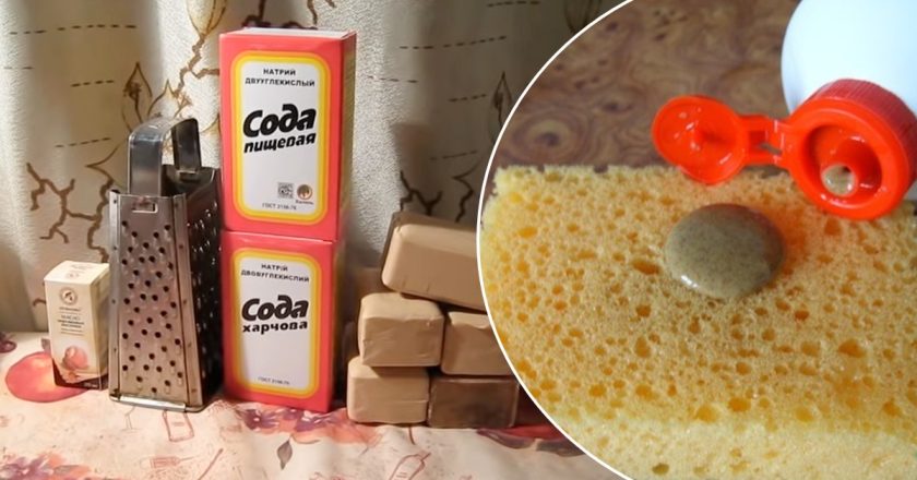 В приготовлении самодельного средства для мытья посуды нет ничего сложного. На терке натираем половину бруска хозяйственного мыла и заливаем его 1 литром воды. Ставим на плиту, чтобы растопить эту массу до однородной консистенции. В полученный гель вливаем 2 столовые ложки водки. Затем тщательно перемешиваем. Добавляем 8 столовых ложек глицерина и взбиваем всё миксером. Переливаем готовый гель в стеклянную или пластиковую емкость и активно его используем. Так как он может храниться лишь 14 дней.