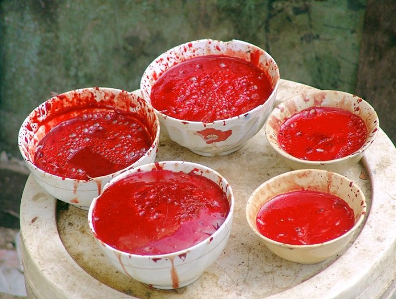 Вьетнамцы используют кровь свиней, гусей или уток для приготовления особого супа, который, по преданиям, наделяет человека, отведавшего его, силой. К сожалению, в крови, приготовленной таким способом, могут сохранятся некоторые заболевания.