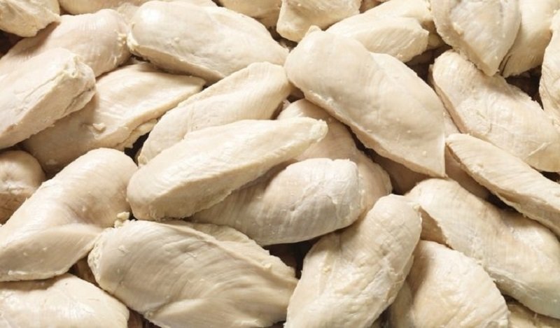 Речь идет о куриной грудке. Калорийность куриного филе составляет 170 ккал на 100 г в приготовленном виде. Что интересно, такая высокая как для диетического продукта энергетическая ценность возможна только из-за высокого процента белка, в то время как жира в ней почти нет (буквально 8 г против 25 г чистого белка). Остальная часть — вода.