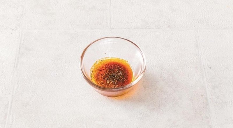 - 1Готовим маринад для мяса. Смешайте 2 ст. л. оливкового масла, сахар, паприку, черный перец, кориандр и соль. Натрите им мясо и оставьте так на 30 минут.