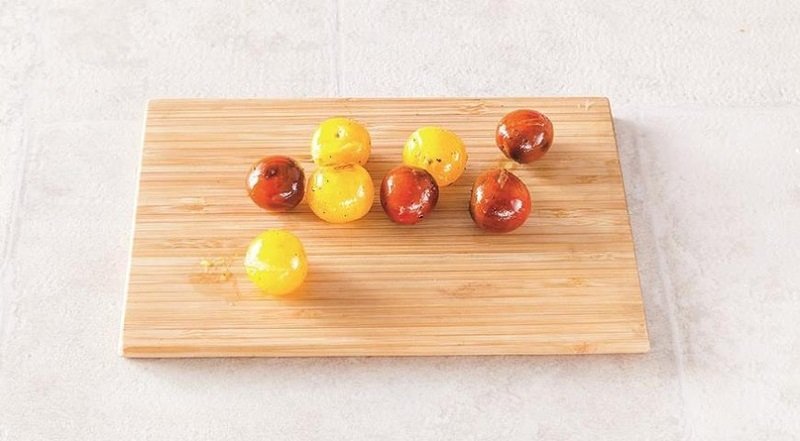 - 2Поставьте духовку разогреваться на 180 градусов. Помидоры проткните вилкой или ножом, смажьте маслом и немного посолите. Отправьте запекаться на 15 минут до немного сморщенного, но упругого состояния.
