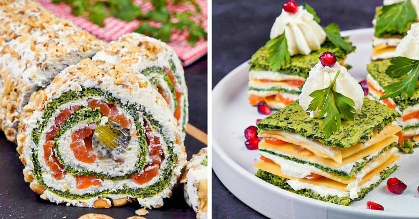 Обязательно возьмите на вооружение рецепт шпинатного коржа. А начинки для праздничных закусок вы можете менять по своему вкусу и желанию. Как думаете, какие сочетания будут наиболее удачными? Делитесь идеями!